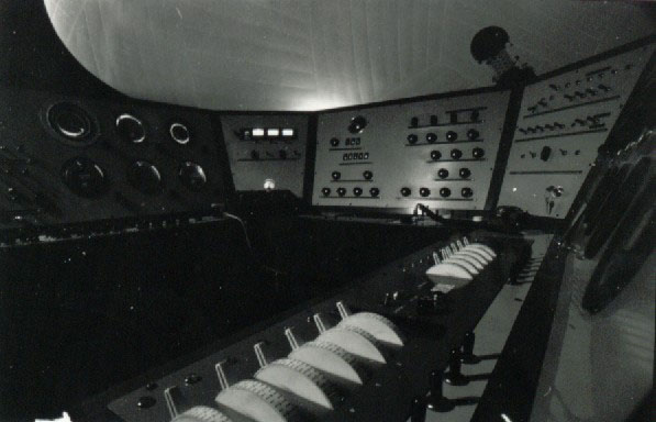 The projector was operated from a Control Console found at the back of the theater. From this area the operator could adjust show volume and cove lights along with adjust the motions of the stars, planets, Sun, and Moon.